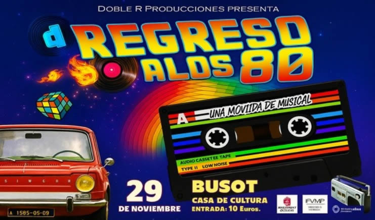“Regreso a los 80” es un musical de la compañía Doble R Producciones (en colaboración con Mundo Imaginarius), dirigido por Rubén Yuste, que celebra la “movida” musical de los 80.